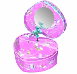 Varázslatos hely minden gyermeki kincsnek: ez a szív alakú zenélő ékszerdoboz egyszarvús motívummal felhúzás és kinyitás után lágy dallamot játszik. Erős, tartós kartonból készült, sima felületkezeléssel, és remek kiegészítő kis hercegnőknek és díszítőkedvelőknek. 6 éves kortól ajánlott.