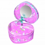 Tárold gyűrűidet, karkötőidet és egyéb kincseidet egy ékszerdobozban, amely a szemnek és a fülnek is öröm. A mechanizmus felhúzása és a fedél kinyitása után kellemes dallam csendül fel, amely még varázslatosabbá teszi a gyerekszoba hangulatát.