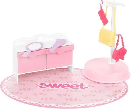 - Rendrakás tanulása – A szett tartalmaz fogasokat a ruhák számára, valamint helyet a cipőknek és táskák elhelyezésére, így segíti a rendrakás megtanulását.