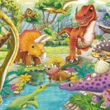 Szórakoztató, három darabból álló dinoszaurusz témájú puzzle szett, egyenként 24 darabbal – ideális kirakó a 3 éves kortól rajongó kicsiknek. Fejleszti a finommotorikát, a türelmet és a logikus gondolkodást. Az összeállított kép mérete körülbelül 26,3 × 17,8 cm.