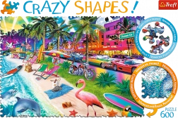 Élvezze a végső kirakókihívást a TREFL Crazy Shapes – Miami strand kirakóval. A szabálytalan, „őrült” alakú elemeknek, a hullámos, egyenes vonalak nélküli szélnek és a napfényes tengerpartot ábrázoló, magával ragadó motívumnak köszönhetően remek türelem- és logikagyakorlat tapasztalt kirakózóknak.