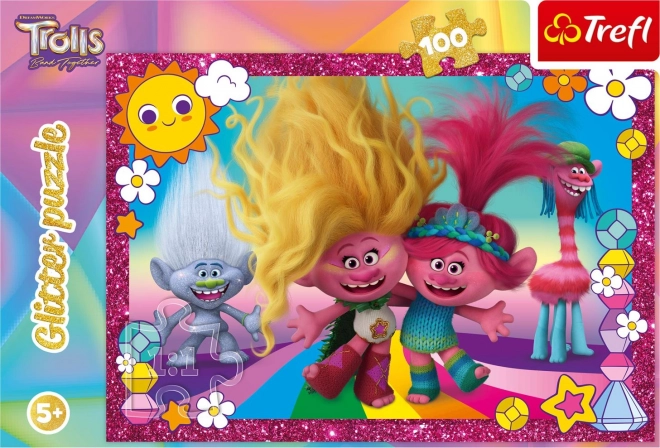 Vidám csillogó TROLLOK 3 puzzle 100 darabbal, amely örömet okoz minden kis rajongónak, aki szereti a fényt és a színeket. A finom csillámoknak köszönhetően az összeállított kép ragyog, és szép dísze lehet a gyerekszobának. Ideális a türelem, a finommotorika és a vizuális képzelőerő fejlesztéséhez.
