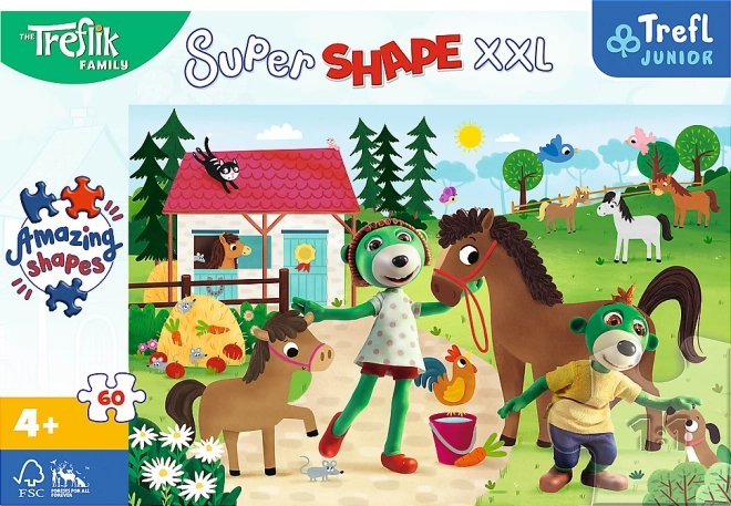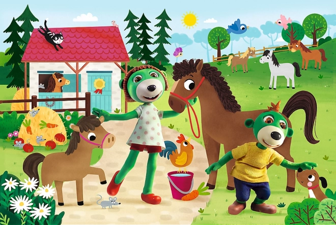 Szórakoztató gyermek puzzle TREFLÍKOK a lovas farmon motívummal, amely örömet szerez minden kis kirakó rajongónak. A nagy XXL elemek könnyen megfoghatók, így ideálisak a gyerekek számára. Összerakás után egy 60 × 40 cm-es kép jön létre, amely fejleszti a finommotorikát, türelmet és a logikus gondolkodást.