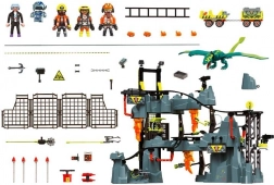 A PLAYMOBIL DINO RISE sorozat akciódús építőkészlete elvezet egy titokzatos dinoszauruszbányába sínekkel, bányakocsikkal és működő felvonórendszerrel. Ravasz csapdák, meredek kanyarok és egy drámai mentőakció vár rád Kaidan figurájával, a bányászbandavezérrel és két gazfickóval, valamint a dinoszaurusz Dimorphodonnal.