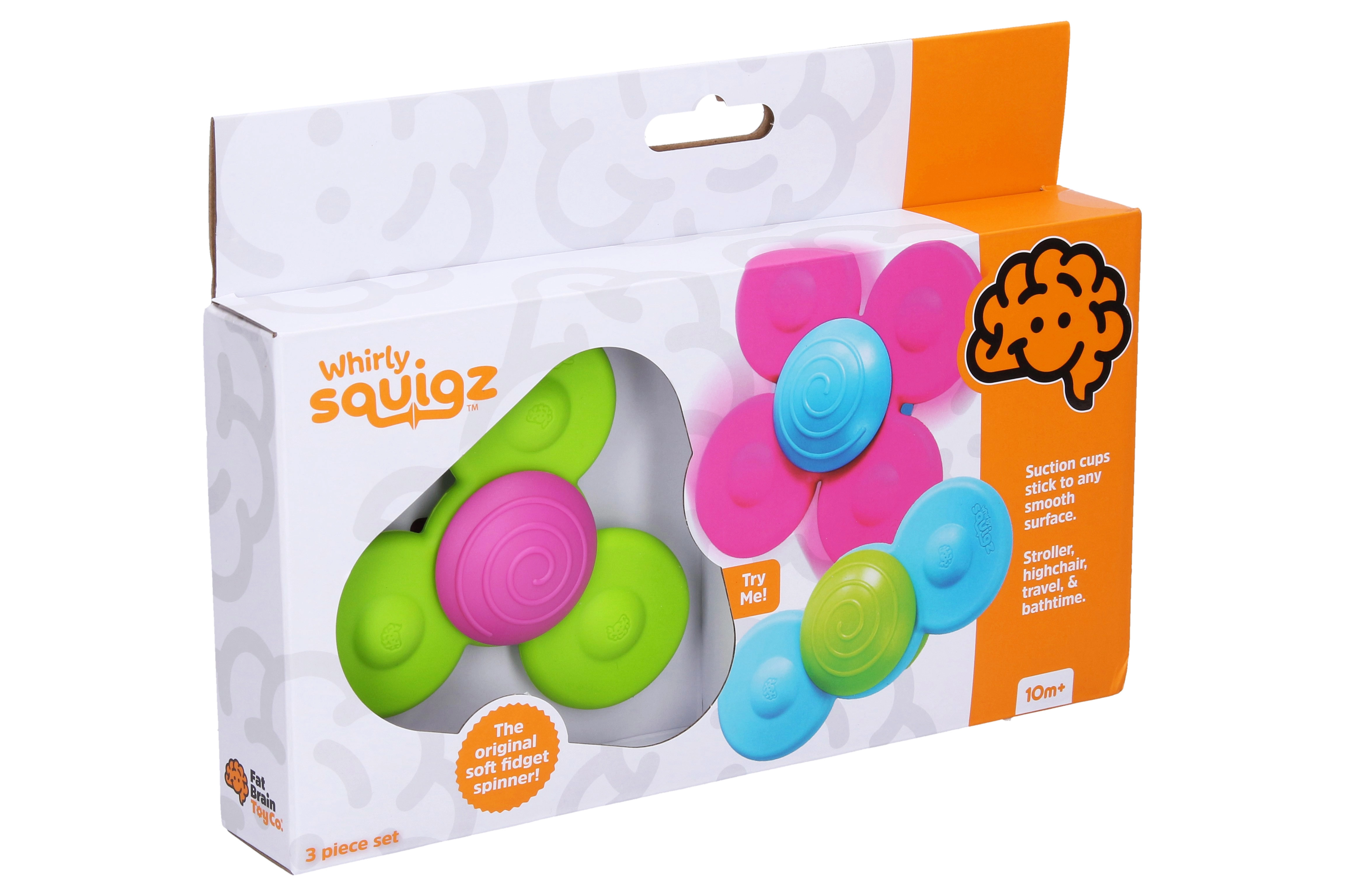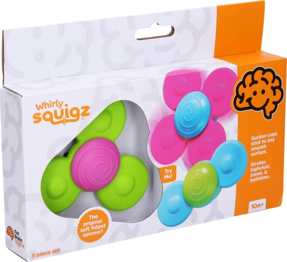 Fedezze fel a legkisebbeknek szánt szórakoztató szenzomotoros játékokat – három színes WHIRLY SQUIGZ spinner tapadókorongokkal. Könnyen rögzíthetők sima felületekre, érintésre finoman forognak. Fejlesztik a finommotorikát, a koncentrációt és az érzékelést. Ideális ablakra, kádra, csempére vagy etetőszékre. Puha anyag, biztonságos formák és végtelen pörgés a gyerekek örömére.