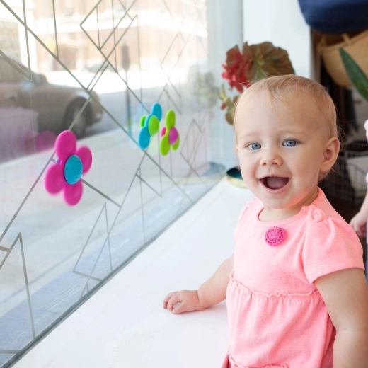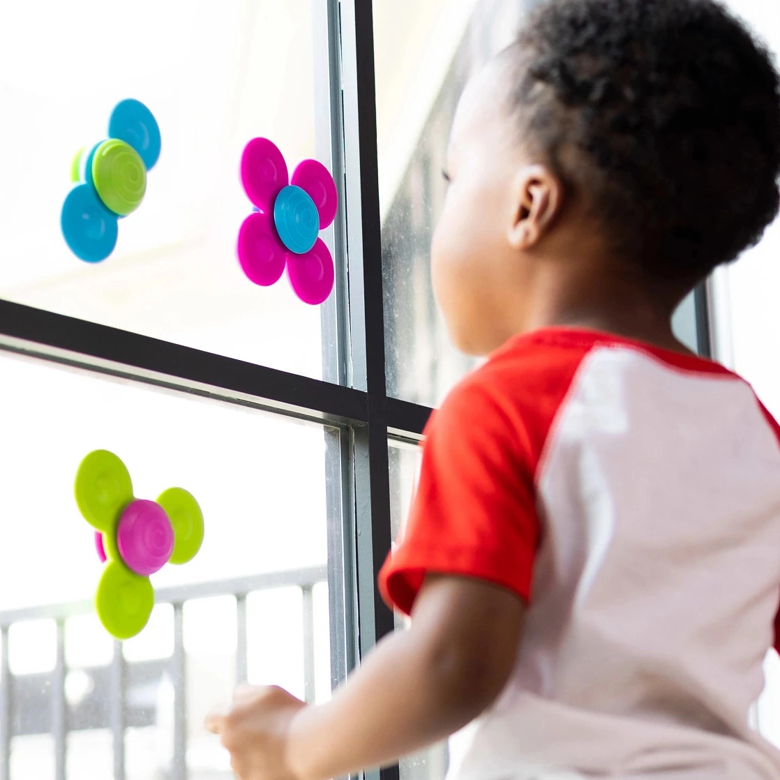 A spinnereket egyszerűen rögzítheti ablakra, csempére, kádra vagy etetőszékre, így a gyerekek bárhol játszhatnak otthon és útközben.