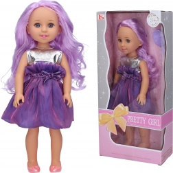 Aranyos baba lila színben, 35 cm magas, amely minden gyermeket megörvendeztet. A csomag tartalmaz egy hajkefét, amellyel könnyedén lehet frizurákat készíteni, fejlesztve a gyerekek fantáziáját.