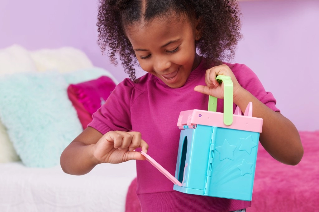 Mássz fel a kötél-létrán a fotóstúdióba, válassz egyet a négy háttér közül, állítsd fel az állványt a fényképezőgéppel, és alkoss tökéletes jelenetet. Egy meglepetés doboz is vár: a QR-kódot beolvasva a Gabby’s Dollhouse ingyenes alkalmazásban (iOS/Android) egy különleges digitális jutalmat nyitsz meg.