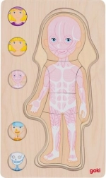 Ez a puzzle az emberi testet öt rétegben ábrázolja, mindegyik réteg részletesen bemutat különféle rendszereket a testben, a csontoktól kezdve az izmokon és a belső szerveken át.