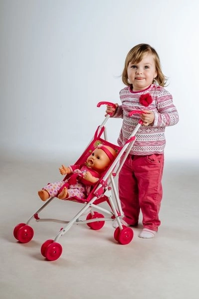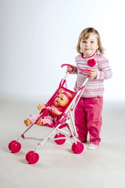A baba biztonsága érdekében a kocsi biztonsági övekkel van felszerelve. Az alacsony tömeg és a kompakt 27 × 55 × 52 cm-es méret miatt a gyerekek könnyen manővereznek vele. A babakocsival való játék támogatja a képzelet fejlődését, a szociális készségeket és a finommotorikát.
