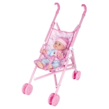 - Komplett szett: baba, összecsukott babakocsi, tálka evőeszközzel, bilike és cumisüveg