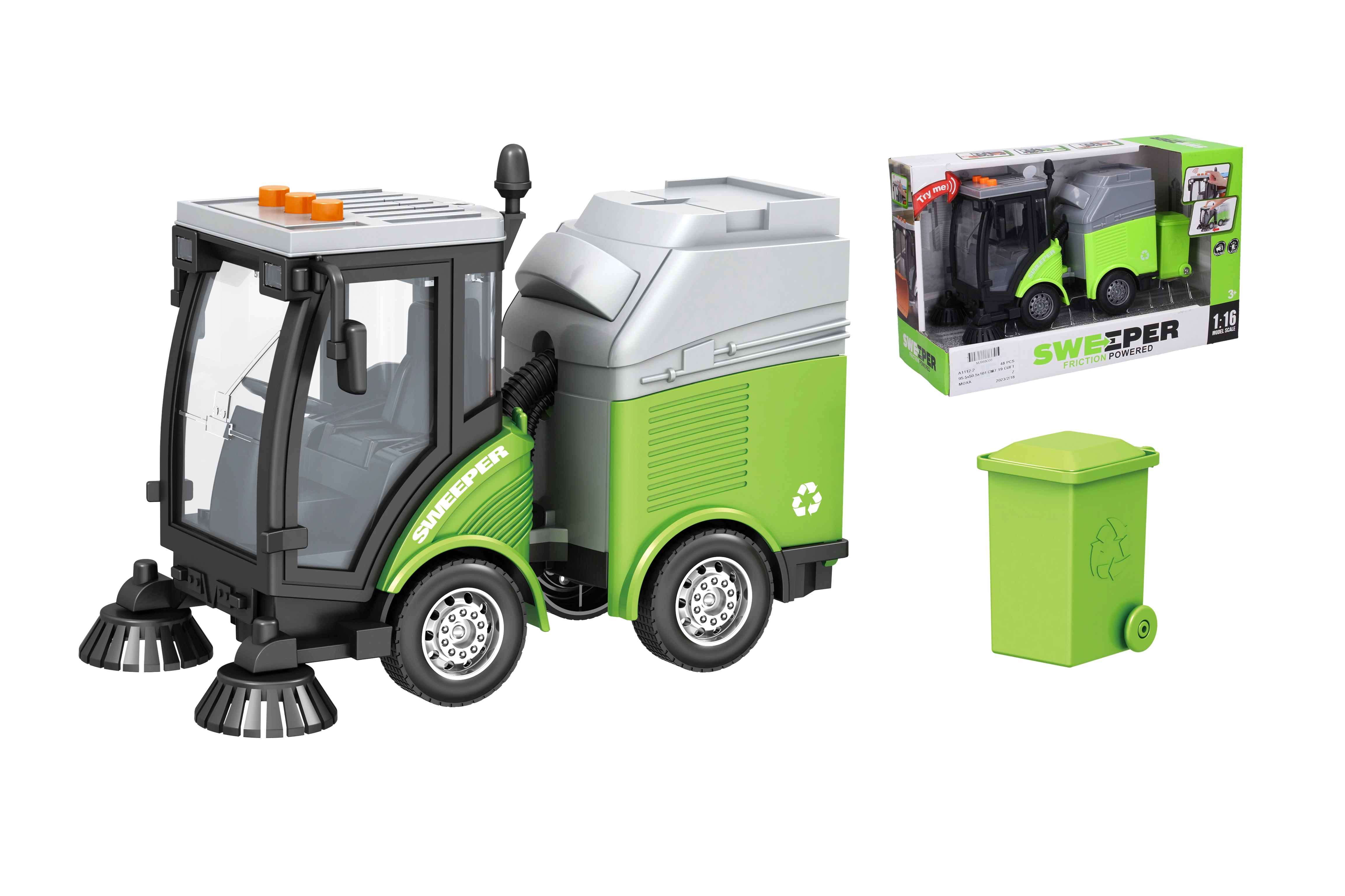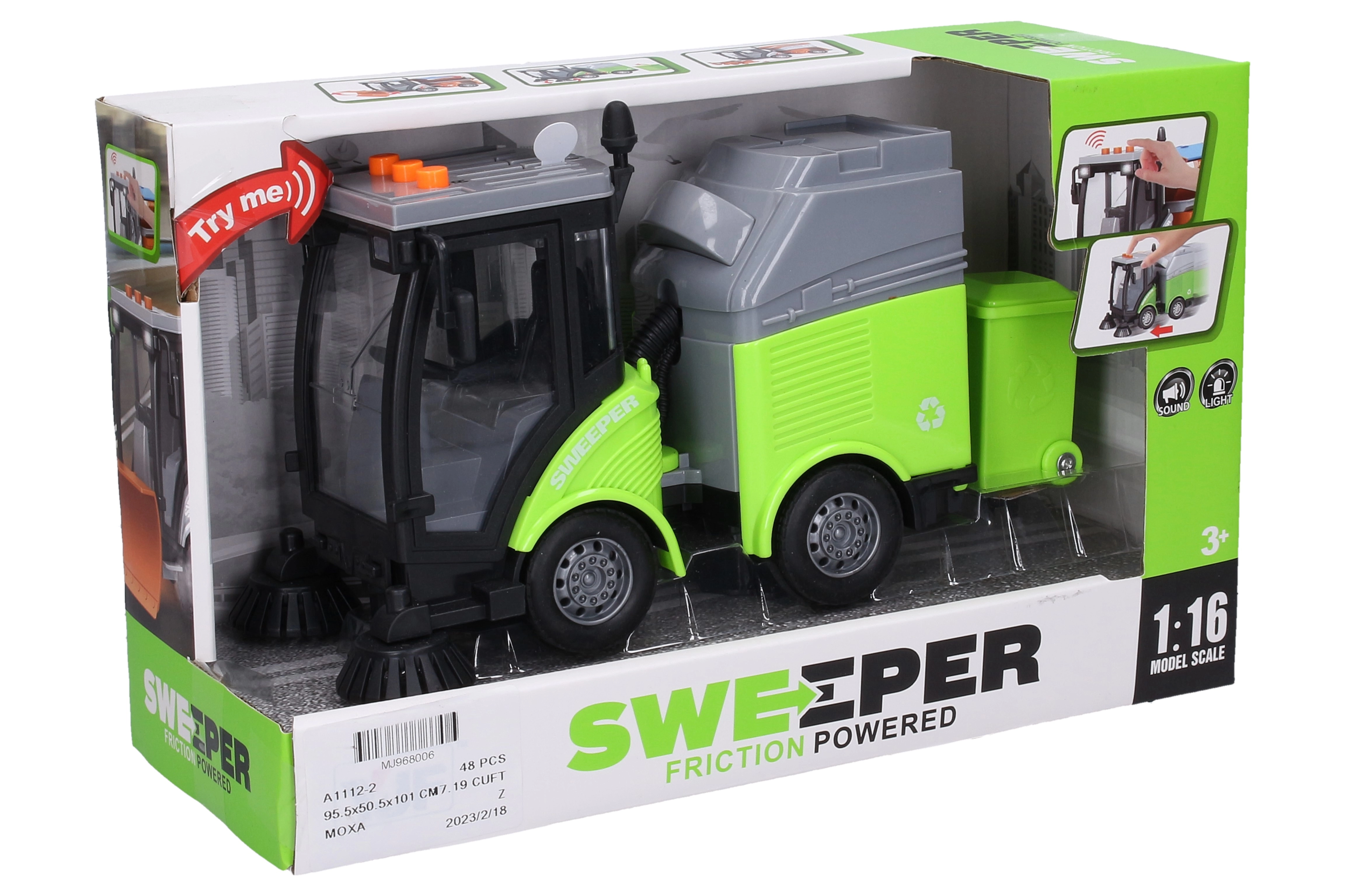 A kis sofőrök imádni fogják a részletgazdag tisztítóautót kukával, amely valósághű városi közlekedési élményt nyújt. A lendkerekes meghajtásnak köszönhetően elég meglökni az autót, és magától suhan előre. A fülkén található gombok olyan effekteket indítanak, amelyek hűen utánozzák az igazi járművet: motorindítás, dudálás és tolatóhang, fényekkel kiegészítve.