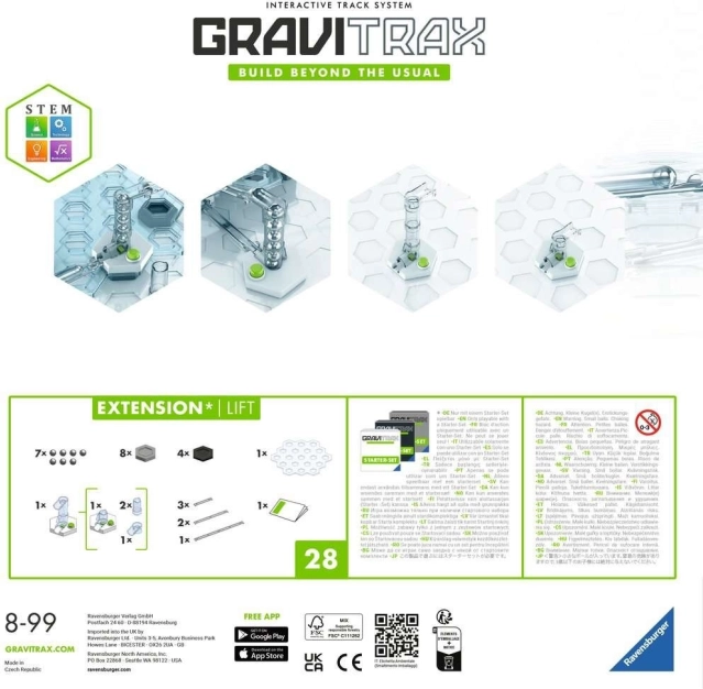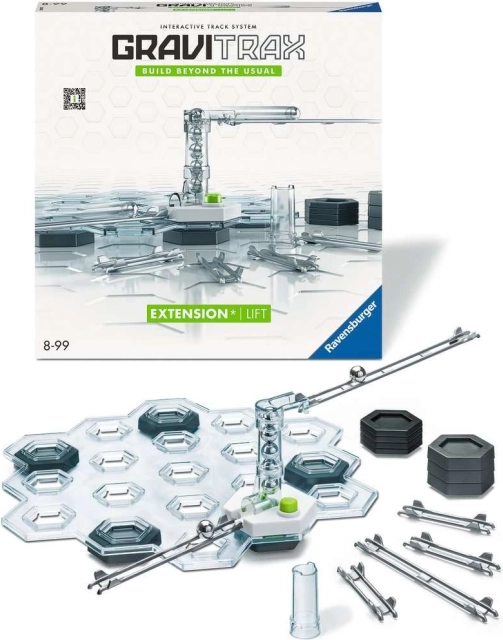 A felvonó kiegészítő készlet további síneket és egy felvonót tartalmaz, amelyek bővítik és változatosabbá teszik a pályát, és lehetővé teszik akár több golyó egyidejű szállítását is!
