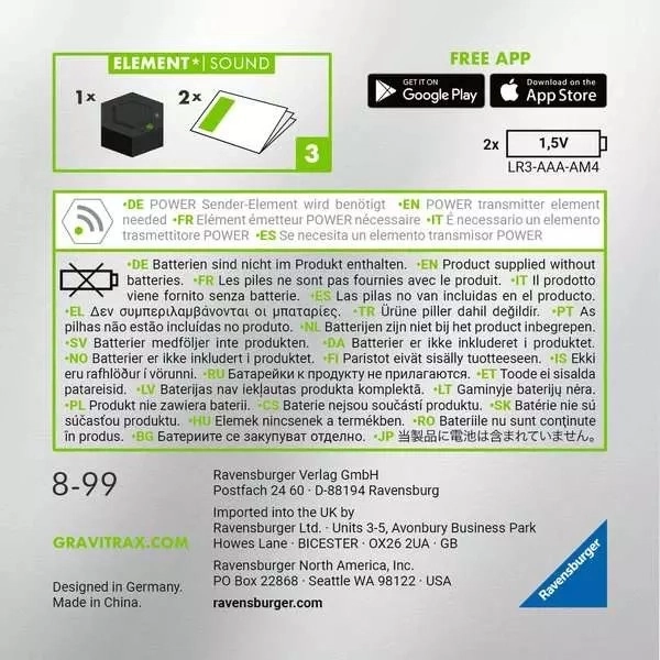 - Kompatibilitás – teljes mértékben kombinálható más GRAVITRAX elemekkel és szettekkel.