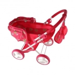 Ez a stílusos gyermek babakocsi könnyű és stabil, így ideális játék minden alkalomra. Kiváló minőségű fémkeretből készült, és egyszerű vezérlést kínál a nagy műanyag kerekeknek köszönhetően. Nemcsak felhajtható a kupolája, hanem tartalmaz egy praktikus fogantyúra rögzített táskát is a kicsi anyuka minden szükséges dolga számára. A babakocsi alján további tárolási hely található. Egyszerű tároláshoz a babakocsi könnyen összecsukható.