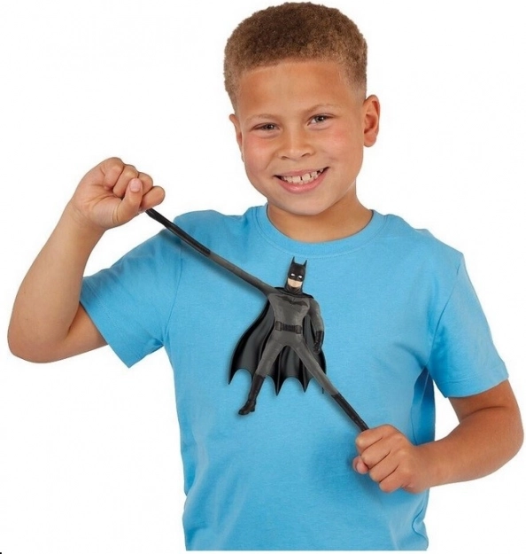Batman, a bűn ellen harcoló szuperhős, visszatér nyújtható változatban! A figura rendkívül rugalmas és tartós. Fogd meg a karjainál és a lábainál, és húzd! Nézd meg, milyen elképesztően megnyúlik! A figura 17 cm magas, és akár 68 cm-ig is nyújtható! Amikor elengeded, különleges tulajdonságainak köszönhetően lassan visszatér eredeti formájába.