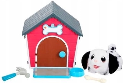 Ez az interaktív szett lehetővé teszi, hogy a gyerekek először a mellékelt elemekkel és „szerszámokkal” megépítsék a színes házikót, majd gondoskodjanak a bájos dalmata kutyusról. A plüss reagál a simogatásra és az ingerekre, élethű hangokat ad, és minden érintés örömet okoz. Kiválóan fejleszti a finommotorikát, a kreativitást és az empátiát.