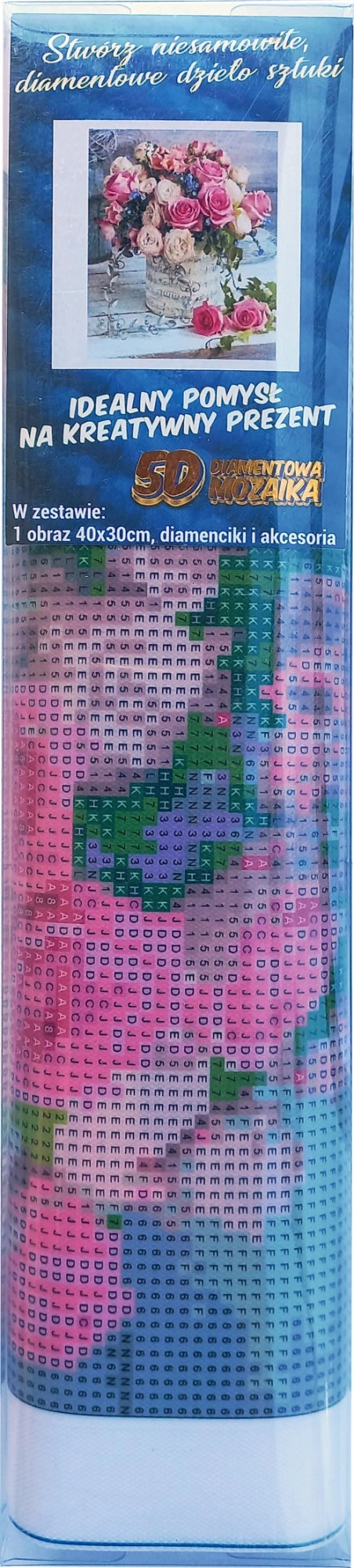 Fedezze fel az alkotás megnyugtató világát a 30 × 40 cm-es Rózsacsokor gyémántfestő kreatív készlettel. Ez a komplett szett mindent tartalmaz a könnyű és szórakoztató alkotáshoz – művészi készségek nélkül is. A parányi kövek felragasztásával csillogó kép születik, amelyet elkészülte után be is keretezhet. Ideális pihenéshez, kreatív szórakozáshoz mindenkinek és remek ajándéknak is.
