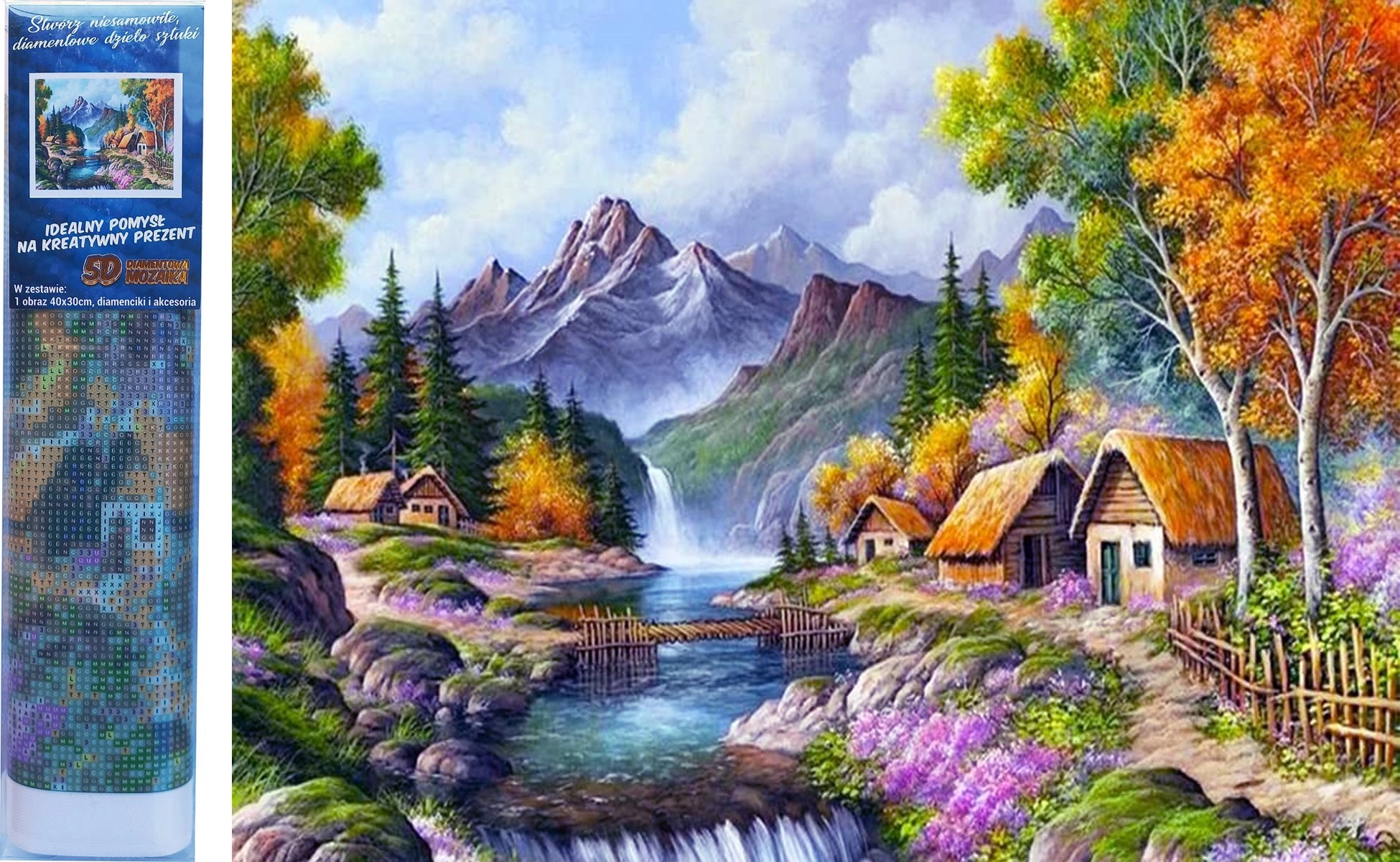 A gyémántszemes festés népszerű kreatív tevékenység, amely ötvözi a relaxációt és az alkotás örömét. A hegyi folyó melletti faház motívum természetes nyugalmával tűnik ki, és befejezés után úgy ragyog, mint az igazi gyémántok. Csak annyi a dolga, hogy a kis kövecskéket sorban a vásznon előre nyomtatott jelölésekre ragasztja, és figyeli, ahogy a kép ragyogó mozaikká alakul.