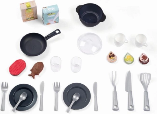 Ez a konyhaszett tartalmaz mosogatót csappal, hűtőszekrényt és espresso kávéfőzőt teás- és kávékapszulákkal. Emellett része a szettnek valósághű ételmodellek, mint a hús és a hal, amelyeknek két oldala van: nyers és sült. A kiterjedt kiegészítők között megtalálható a lábas fedővel, tányérok, evőeszközök, edények és további. Minden könnyen elrakható a praktikus polcokra vagy használható egy kis asztal a játékhoz.