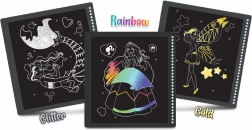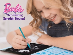 Fedezd fel a színek varázsát Barbie-val a lenyűgöző fantáziastílusú Karcrajz Füzettel. Használd a mellékelt tollat, hogy előbukkanjanak a szivárvány élénk színei a fekete felület alatt.