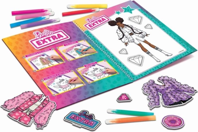 Mutasd meg kreativitásodat a Barbie vázlatfüzettel! Készíts divatterveket trendi matricákkal és színes filctollakkal minden divatrajongónak.