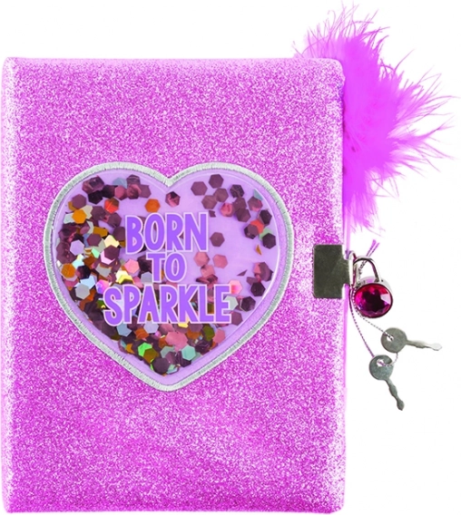 Csillogó, kemény borítójú napló. 160 színes oldalt, tollat tollszárral és lakatot kulcsokkal tartalmaz. 6 éves kortól ajánlott.
