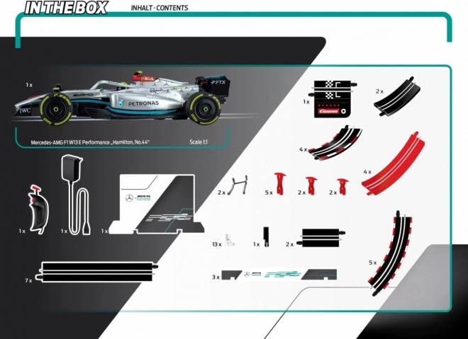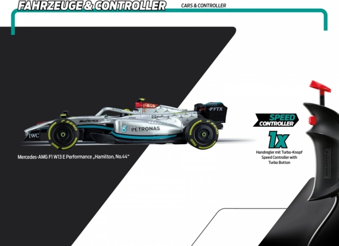 Rajtolj otthoni aszfaltcsíkon, és éld át az igazi versenyek feszültségét. A Carrera GO!!! szett a Mercedes AMG PETRONAS 44-es rajtszámú, élethű modelljét és precízen kialakított pályát kínál. Gyors egyenesek, kanyarok és turbó gyorsítás gondoskodnak a dinamikus menetről és a szuper szórakozásról a kicsik és nagyok F1-rajongói számára.