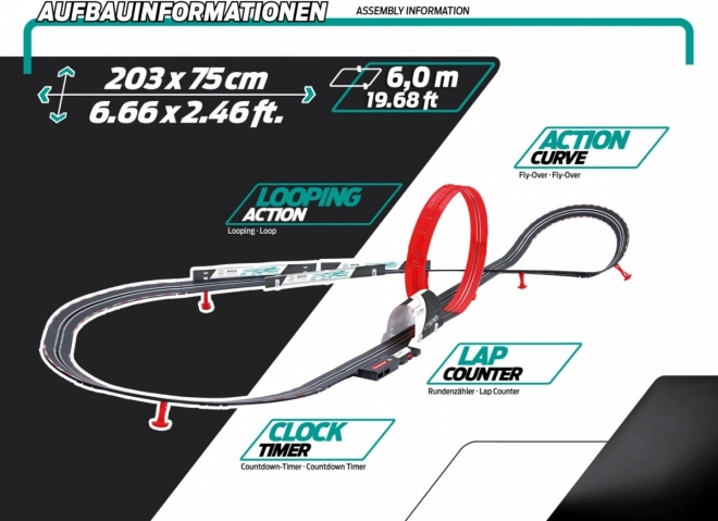 A pálya könnyen összeszerelhető, stabil, és tartós kivitelének köszönhetően az intenzív versenyzést is bírja. Remek választás az első lépéshez a slot racing világába: kompakt méretek, intuitív irányítás és gazdag tartozékkészlet az azonnali élményért.