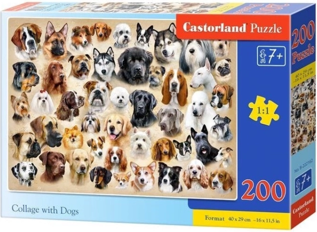 A CASTORLAND Kutyás kollázs puzzle ideális választás mindenkinek, aki szeret szép képeket kirakni. A puzzle 200 darabból áll, és kirakva 40 × 29 cm méretű képet ad.