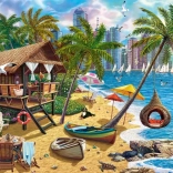 Élvezze a pihenést a CASTORLAND puzzle-lel, Nyár a városban motívummal és 1000 darabbal. Ideális a részletgazdag illusztrációk, a minőségi kivitelezés és a családi szórakozás kedvelőinek. Az elkészült kép mérete kb. 68 × 47 cm, és remekül alkalmas keretezésre.