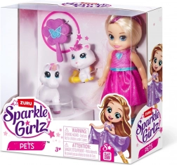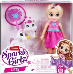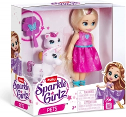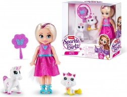 Fedezd fel a Sparkle Girlz varázslatos világát! Ez a baba gyönyörű, csillogó részletekkel díszített ruhában és hosszú hajjal ideális a mindennapi játékhoz. A mellékelt kis kedvencnek és kiegészítőknek köszönhetően a gyerekek saját történeteket alkothatnak, és fejleszthetik finommotoros és szociális készségeiket.