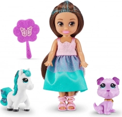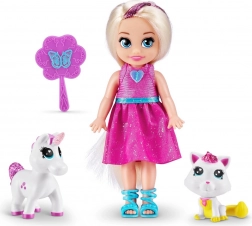 Minden szett tartalmaz egy gazdagon díszített ruhájú babát, egy vagy két aranyos állatkát (pl. unikornis, póni vagy kiscica), valamint tematikus kiegészítőket, mint például fésű vagy varázslatos, pillangó alakú tükör. Kompakt mérete miatt utazáshoz és a gyerekszobába is remek választás.
