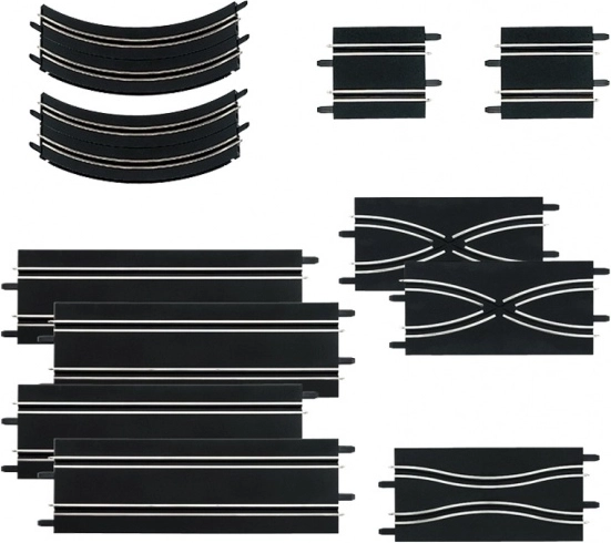 Ez az átfogó bővítőkészlet ideális mindenkinek, aki a pályáját a következő szintre szeretné emelni. Az egyenes elemek, a kereszteződések és a sikán kombinációja lehetővé teszi új pályakonfigurációk létrehozását, növeli a versenyek dinamikáját, és technikás szakaszokat ad hozzá a nagyobb kihívásért.