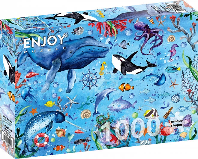 Élvezze a pihenést a 1000 darabos, Mélykék tenger motívumú minőségi kirakóval. Ideális a puzzle és a tengeri tájak szerelmeseinek, a kész kép mérete kb. 68 × 48 cm.