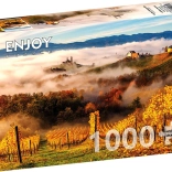 Fedezze fel a nyugodt szőlőhegyi táj varázsát részletgazdag motívummal, amely örömet szerez a borkedvelőknek és a puzzle-rajongóknak egyaránt. A 1000 masszív darabnak köszönhetően az összerakás szórakoztató, és fokozatosan tárul fel a gazdag színekben pompázó, gyönyörű kép.