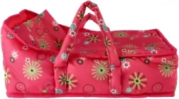 Ez a szövetből készült hordozható babakosár tökéletes kiegészítő minden apró szülő és babáik számára. Puhatestű textilből készült, virágmintával, ami kényelmet és stílust biztosít a gyermekek számára.