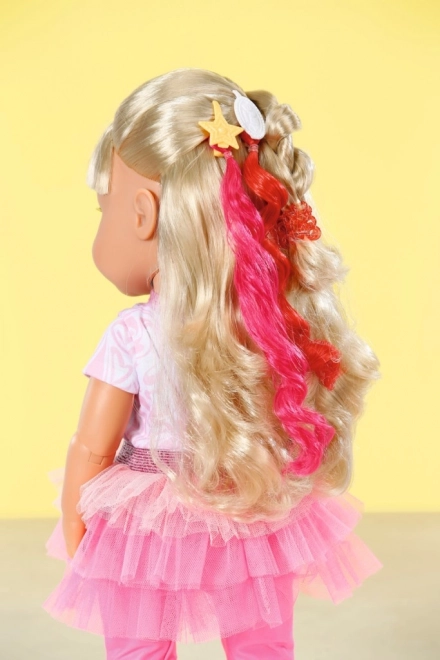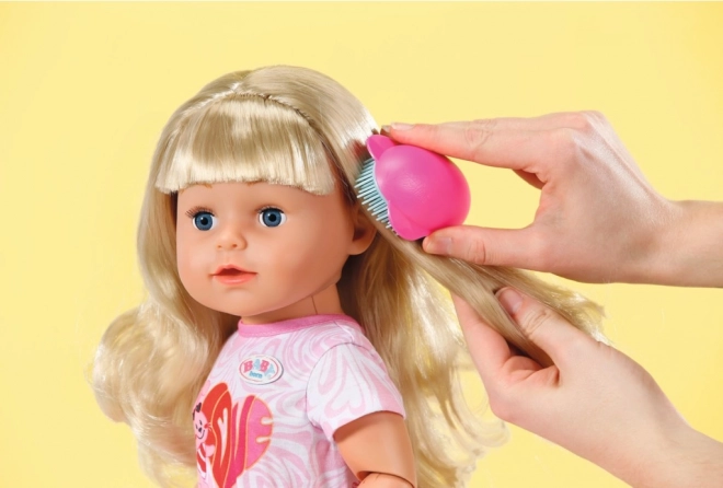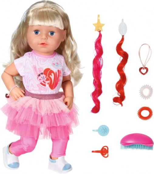Játssz a Nagyobbik BABY born nővérkével, amely hét hihetetlenül valósághű funkciót kínál, amelyek órákig tartó szórakozást biztosítanak. A baba minden kalandra kész ízületei révén, amelyek lehetővé teszik, hogy különböző pózokat és mozdulatokat vegyen fel. Hosszú szőke hajkoronája készen áll a frizurázásra a csomagban található hajkiegészítőkkel.