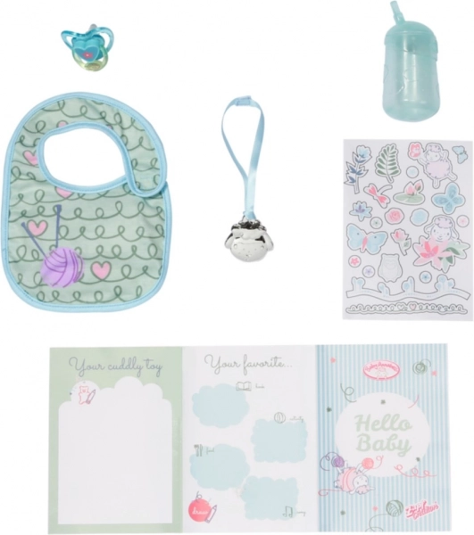 A csomagban található még cumi, cumisüveg, előke, nyaklánc és egy gyermekalbum matricával, amelyek lehetővé teszik a személyre szabást és a kreativitás fejlesztését a játékkörnyezetben.