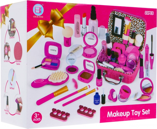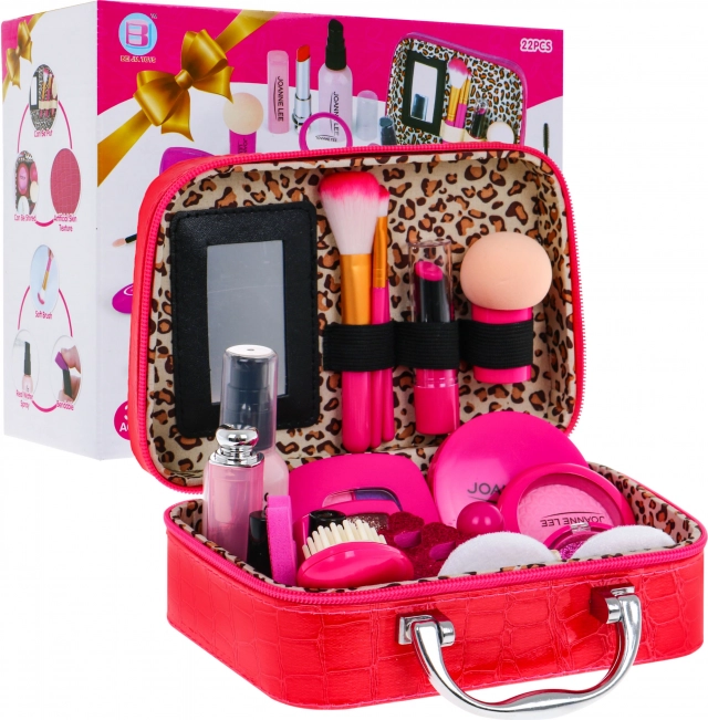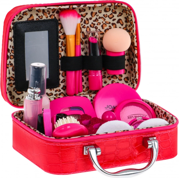 | A biztonságos sminkkiegészítőkkel színültig megtöltött kis táskát tartalmazó készlet 3 éves kortól ajánlott. Az elegáns, nagy neszesszer puha ökobőrből készült. Kényelmes fogantyúval, négy kis lábbal az alján és belső tükörrel rendelkezik. Cipzárral zárható. A teljes készlet 22 elemből áll, tartalmaz kozmetikumokat, mint például szemhéjpúderek, csillámok, rúzsok, körömlakk, szempillaspirál és még sok más. A kozmetikumok utánzatok, de élethűek, nem kopnak, és a gyermek bőre biztonságban van. A sminkkel való játék fejleszti a kreatív gondolkodást, edzi a képzelőerőt és támogatja a koncentrációt. | |