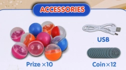 | Mindenki ismeri a bevásárlóközpontok népszerű automatáit, ahol kabalát lehet megfogni. Bemutatjuk a kisebb verziót, egy kisméretű automatát, amely rengeteg szórakozást nyújt mindenkinek. A játéknak hang- és fényhatásai vannak. 3 nehézségi szint választható: 30 s, 60 s, 90 s. A játék műanyag érme bedobása után indul (12 db a csomag része). A játék célja, hogy a gép belsejében lévő karmokkal elkapjuk a labdát (10 db a csomag része); a nehézségi szinttől függően erre 30, 60 vagy 90 másodperc áll rendelkezésre. A játék műanyag érme bedobása után indul (12 db a csomag része). A próbálkozás közben pörgős zene kísér. A labdába meglepetést is tehetünk, így a játék még érdekesebb lesz. A labdákon kívül apró játékokat, kabalákat stb. is betehetünk a gépbe. A játéknak két hangerő-módja van, és a fényhatások ki- és bekapcsolhatók. Az automata 3 x LR20 elemmel működik (nem tartozék) vagy USB kábellel (tartozék). A játék 3 éves kortól ajánlott, CE tanúsítvánnyal. | |