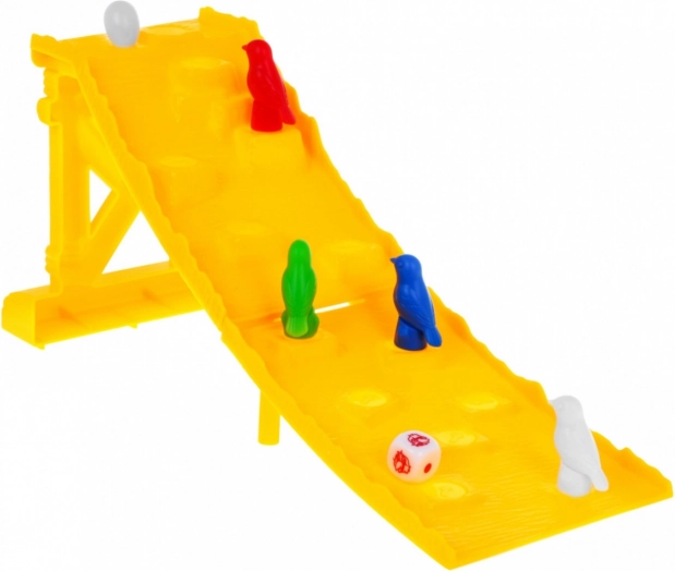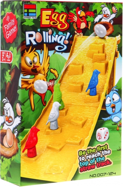 Szórakoztató és izgalmas társasjáték a legkisebbeknek 3 éves kortól, amelyben színes madárkák száguldanak a szalmakötegeken egészen a pálya tetejéig. A játékosok dobnak a kockával és léptetik a figurákat, de vigyázat a leeső tojásra! Az visszalökheti az ellenfelet a startra. Ideális 2–4 játékosnak, fejleszti a kézügyességet, a észlelést és a taktikai gondolkodást.