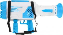 Szórakoztató buborékfújó pisztoly futurisztikus dizájnnal, amely 52 nyílásos fejének köszönhetően százával fújja a buborékokat. Tartozék a tölthető akkumulátor, két utántöltő és egy praktikus pánt. Hordozható ventilátorként is használható – ideális nyárra, kertbe és gyerekzsúrokra. Egyszerű kezelhetőség, LED-világítás a buborékokhoz és gazdag tartozékkészlet a maximális szórakozásért.