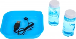 - Buborékfújó pisztoly, 2× buborékfolyadék-utántöltő, 3,7 V-os akkumulátor, matricák, pánt, USB-kábel, tálka a folyadékhoz