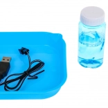 - Egyszerű használat: öntsd a folyadékot a talpba, mártsd bele, nyomd meg – és már repülnek is a buborékok.