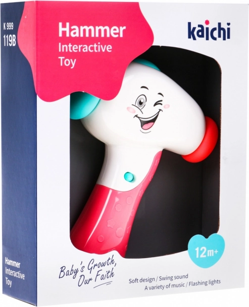 | | A színes interaktív kalapács 12 hónapos kortól ajánlott játék. A kalapács vidám dizájnnal rendelkezik, és fény- és hangeffektekkel van felszerelve. Minden ütés után dallamok és különféle hangok szólalnak meg, a játék tetején lévő fény pedig villog. A játék 2 x AA elemmel működik, amelyek a csomag részét képezik. A kalapács használata pozitívan hat a gyermek érzékszervi fejlődésére, támogatja a finommotorikát, a kognitív képességeket és a szem-kéz koordinációt. A játék funkciói: - hanghatások, - fényhatások, - ismeretfejlesztő-formáló. | Méretek | |