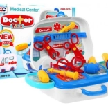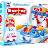 Szórakoztató és oktató jellegű orvosi szett 3 éves kortól, hordozható, kerekes mentőautó alakú bőrönd formájában, amely órákon át tartó kreatív játékot biztosít. Gazdag tartozékkal érkezik, mint például szemüveg, olló, hőmérő, fecskendő és kalapács, valamint összecsukható munkafelülettel MRI-vizsgálatot utánzó elemmel. Ideális a finommotorika, a képzelet és a doktoros szerepjáték fejlesztésére otthon és útközben.