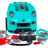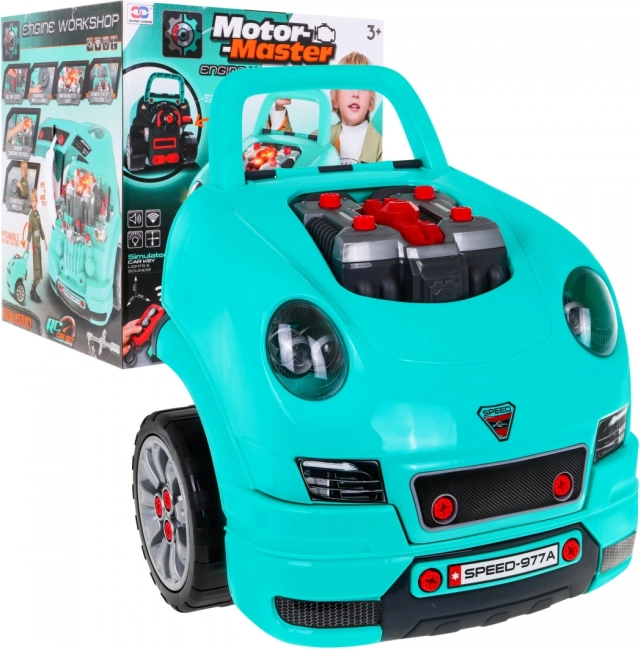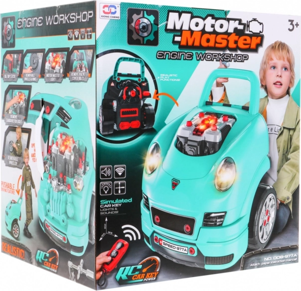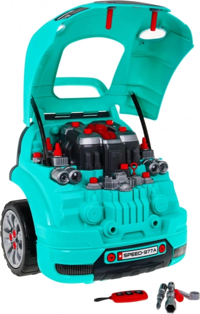 Ez az átfogó „kis szerelő” készlet egy autó elejét tartalmazza gazdagon felszerelt, szerelhető-szétszedhető motorral, működő műszerfallal indítógombbal, kormánnyal dudával és vészjelzéssel. A gyerekek „szervizelhetik” a gyertyákat, kerekeket és a motor alkatrészeit, miközben a fényeket és hangokat a mellékelt távirányítóval vezérlik.