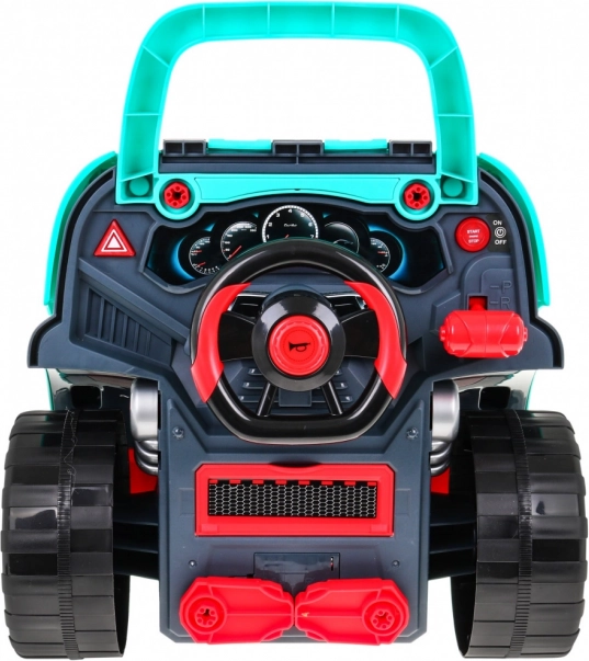 A csomag 61 darabot tartalmaz, köztük dísztárcsás kerekeket, csavarokat, szerszámokat és pót motoralkatrészeket. A praktikus kormány alatti tárolórekesz elnyeli az apróságokat és tartozékokat, a játék pedig hordozó fogantyúval is rendelkezik. Ideális 3 éves kortól azoknak a gyerekeknek, akik szeretnék felfedezni az autó működését, és fejleszteni kézügyességüket és képzelőerejüket.