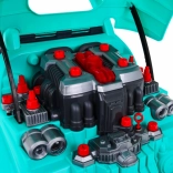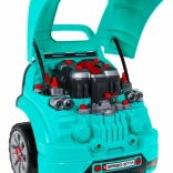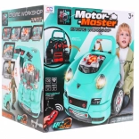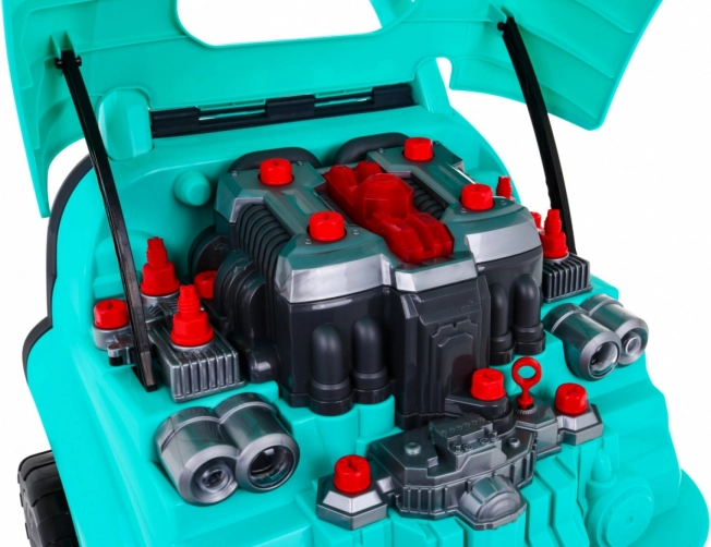 A motorháztető alatt rengeteg szerelhető és szétszedhető elem vár: gyertyák, propeller, szíjak és burkolatok. A gyerekek biztonságos, játékos formában próbálhatják ki a valódi szervizelési lépéseket.